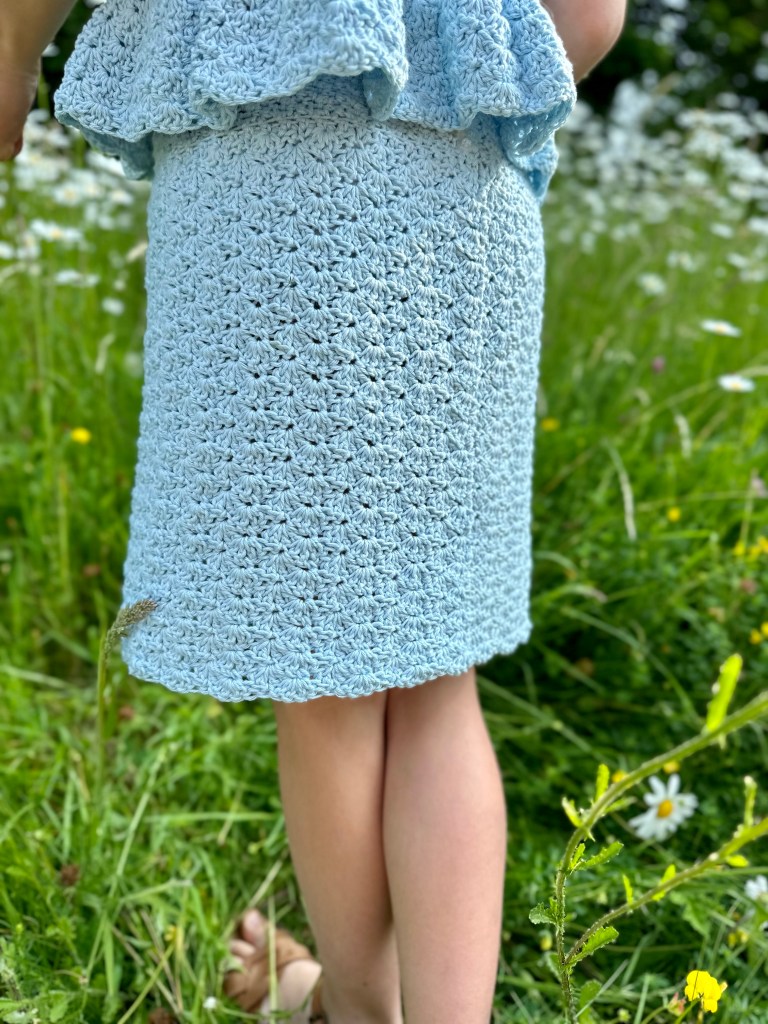 The Everly Skirt is a super simple and easy design to make. The skirt will look gorgeous with a light summer blouse or you can make the matching Everly Top. The pattern starts with making the waistband using dc and sc stitches. Next the skirt is stitched directly onto your finished waistband. Add length to the skirt with the repeating lace motif pattern that will be easy for you to memorize in minutes! The last step is to weave in your ends and sew on the buttons. That’s it!